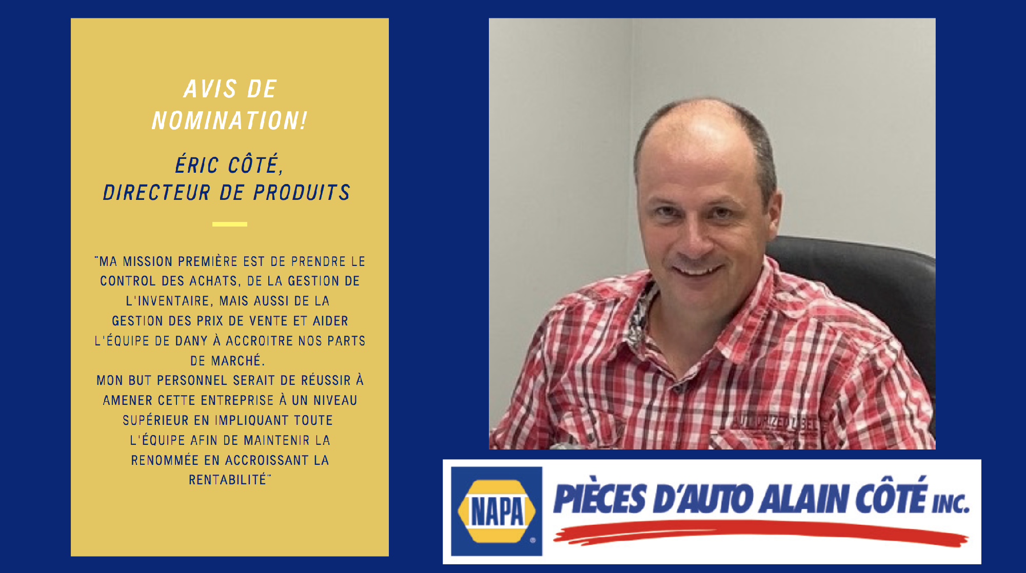 Nous voulons souhaiter la bienvenue à Éric Côté !
